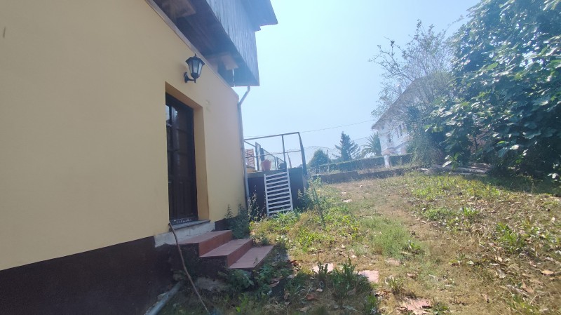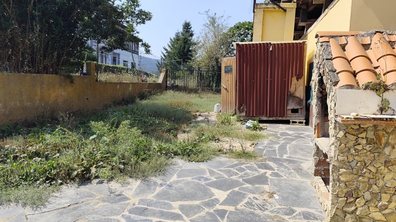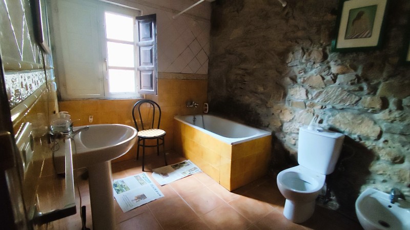 Al lado de ésta, tenemos una construcción de dos viviendas, una sería la planta baja y primera distribuida en salón, cocina, baño y subiendo las escaleras un pasillo que se distribuye en tres estancias, y desde donde se accede al jardín.