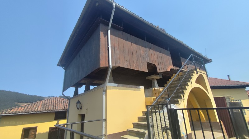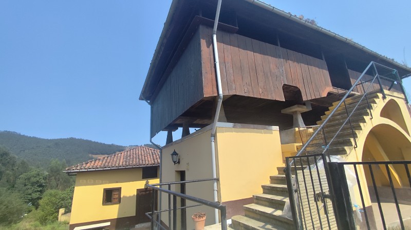 En planta superior, está el hórreo rehabilitado como vivienda, una experiencia única ideal para una pareja pasar un maravilloso fin de semana. En esta construcción está un salón con cocina básica, una habitación y baño y con salida al corredor para apreciar la naturaleza.