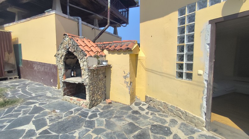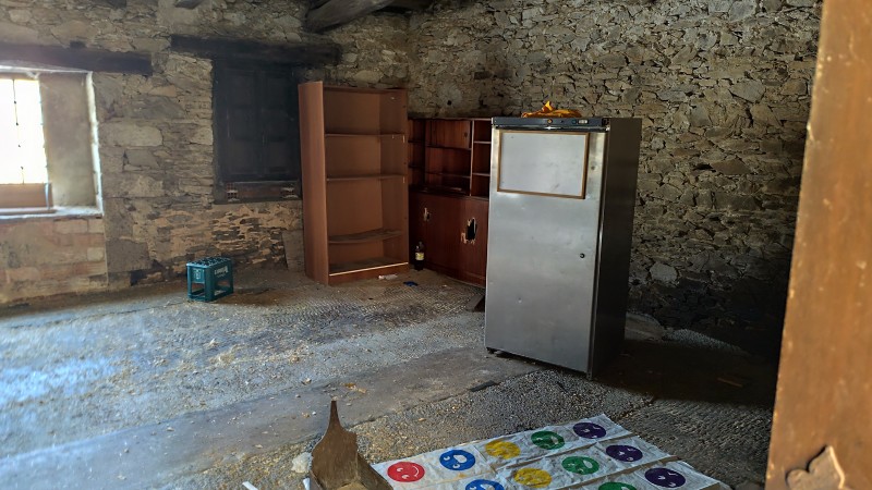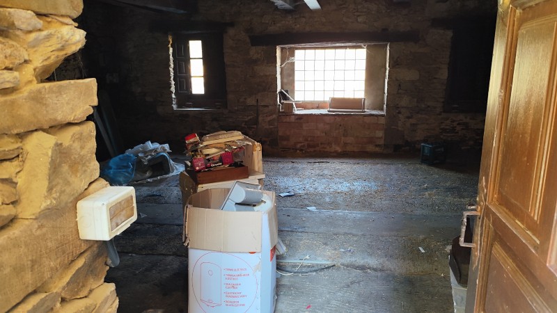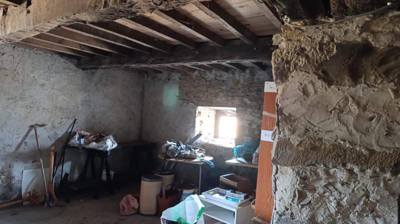 La construcción de la derecha, es una casa rural de dos plantas, una planta primera distribuida en cocina, sala de estar, comedor, dos habitaciones y baño la planta baja dedicada a almacén.