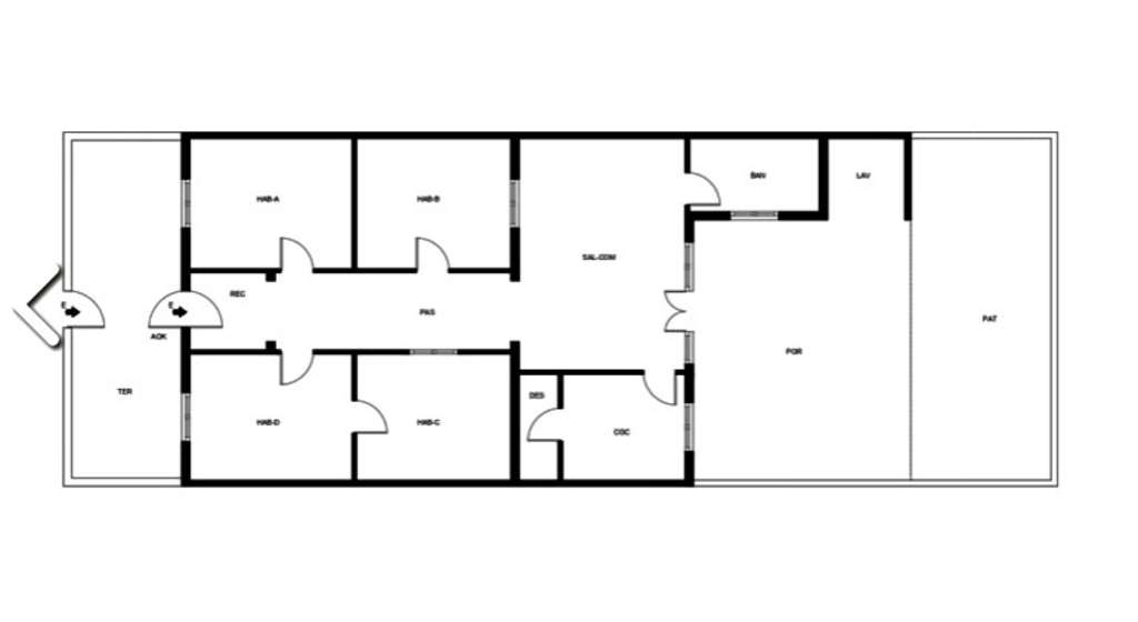 Vivienda unifamiliar de una planta, la vivienda está compuesta por 4 dormitorios, un cuarto de baño, salóncomedor, cocina, trastero y patio. El inmueble cuenta también con un porche delantero y un patio parcialmente cubierto. Además, cuenta con zona de barbacoa y almacenaje. Dispone de pila tipo lavadero y una caseta de perro en el patio.