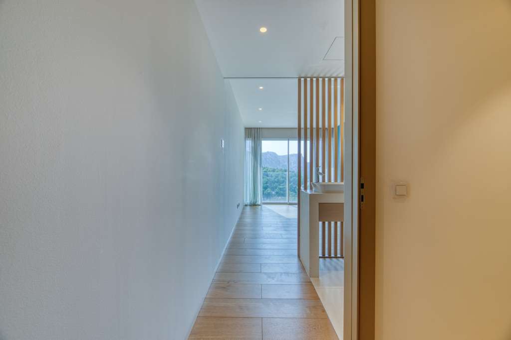 La moderna villa ofrece aprox. 280 m² de superficie habitable (aprox. 493 m² de superficie construida) en la primera planta, con un amplio salón-comedor con cocina abierta, aseo de invitados y patio (5 m²). Desde esta planta se accede a la zona exterior con terraza cubierta (41 m²), piscina privada (20 m²), zona de estar (15 m²), otra terraza descubierta y vistas al mar y a la montaña. En la segunda planta se encuentran tres dormitorios, cada uno con baño en suite y vestidor. Los tres dormitorios ofrecen fantásticas vistas a las montañas y al mar. Una característica especial de esta casa es otro amplio espacio diáfano en la segunda planta con lavadero y aseo de invitados, que podría convertirse en un cuarto dormitorio con baño en suite. En el sótano hay una sala técnica, otras habitaciones de uso gratuito y acceso directo al garaje subterráneo, donde hay una plaza de aparcamiento privada. Hay otra plaza de aparcamiento descubierta frente a la entrada de la casa. La zona comunitaria ofrece hermosos jardines, una gran área de piscina con vistas al mar y sala de fitness, así como una casa club con servicio de conserjería, piscina cubierta climatizada, jacuzzi, sauna seca, sauna de vapor, otra sala de fitness, oficinas para uso privado y una zona de bar con una hermosa terraza al aire libre.