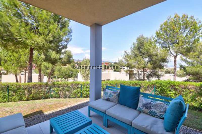 Información adicional: aire acondicionado, vistas parciales al mar, dos plazas de aparcamiento, piscina comunitaria, terraza y jardín privados.