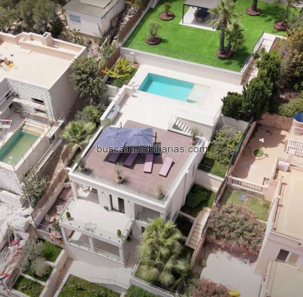 Outside the bedroom there is a machine room prepared for a washing machine. Three terraces, including a sun terrace with panoramic views, an outdoor kitchen and a 26 m2 pool with filter system and salt chlorinator. Another terrace has a pergola, an outdoor kitchen and a barbecue. The top terrace is equipped with solar panels and plants.