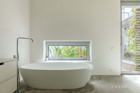Se accede a través de una pasarela elevada sobre un jardín tropical. El interior se distribuye en dos plantas, conectadas visual y físicamente con las terrazas exteriores. Cada estancia está pensada para captar la luz, el aire y las vistas al mar, con ventanales de suelo a techo, suelos de hormigón pulido y acabados minimalistas.