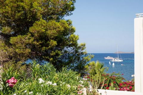 Rodeada de vegetación pero a solo unos pasos del acceso a Santa Eulalia, con sus restaurantes, tiendas y puerto deportivo. La playa está prácticamente en la puerta de casa, haciendo que los baños diarios y los paseos junto al mar se conviertan en un estilo de vida.