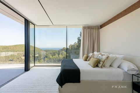 Entre los pliegues arbolados de Roca Llisa, Villa Bonita se eleva con discreción sobre el paisaje, trazada con una geometría nítida y largas líneas de vidrio. La arquitectura transmite calma e intención: volúmenes blancos y suaves, terrazas profundas y una piscina infinita que prolonga el horizonte. La luz de la mañana recorre las fachadas, desplazándose entre mar, cielo y pinos.