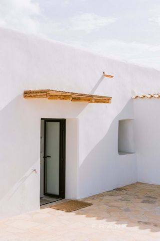 La luz se filtra a través de los gruesos muros encalados de estilo ibicenco, iluminando espacios definidos por la textura y la proporción.