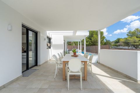 White minimal styling both inside and out represents the owner´s fine taste in finishings, with the outdoor areas designed extremely well to accommodate a good sized L-shaped pool (with a shallow end for children), and a very nice semi covered outdoor dining area.