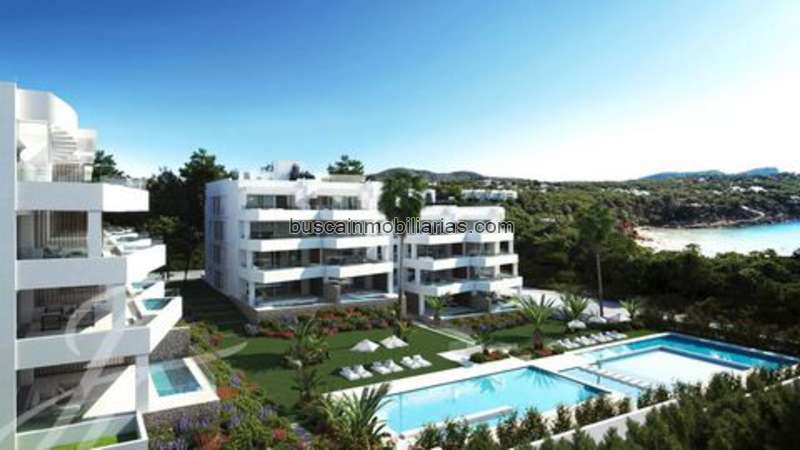 The development consists of two elegant four-story buildings, designed to maximize comfort and Mediterranean living. The homes are distributed in different layouts: the ground floors offer private gardens, the first and second floors have large terraces, and the penthouses feature exclusive private solariums, perfect for enjoying the views and the Ibiza climate.