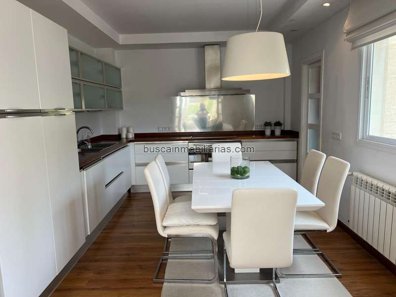 En la planta baja encontrarás un elegante hall de entrada, un amplio y luminoso salón comedor con grandes ventanales que conectan directamente con el porche exterior, una bonita cocina independiente, totalmente amueblada y equipada, con zona de comedor y salida a la coladuría. Además, cuenta con un baño completo y una habitación en esta planta.