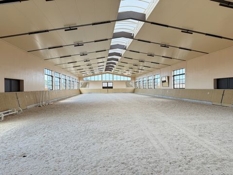 Die professionell ausgestattete Reitanlage umfasst rund 5.000 m² bebaute Fläche und eignet sich sowohl als Gestüt als auch für Pferdezucht, Dressur, Springreiten, Polo oder die Haltung anderer Tiere. Insgesamt stehen 50 Pferdeboxen in fünf U-förmigen Stalltrakten mit Vorplatz, Sattelkammern und Waschplätzen zur Verfügung.