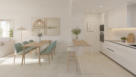 Hay un total de 36 apartamentos con superficies útiles desde 46 m² hasta 80 m². Cada apartamento tiene un amplio salón/comedor, una cocina totalmente amueblada y equipada, 2 baños completos (uno en suite) y 1-3 dormitorios dependiendo de la unidad. Las terrazas son amplias y miden hasta 18 metros cuadrados. También hay garage y trastero. El dormitorio principal tiene su propio vestidor. Los pisos están diseñados para tener mucha luz natural con grandes ventanales hacia el exterior. El complejo también cuenta con dos piscinas, una de agua salada para adultos y otra para niños, además de gimnasio y otras zonas comunes.