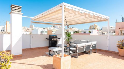 Ático con terraza grande con buena ubicación en Son Espanyolet Propiedad en edificio moderno cerca de Palma Tennis Club En una muy buena ubicación en Son Espanyolet, en un pequeño edificio de dos pisos de 2008, está este agradable ático. Aquí encontrará paz y tranquilidad, y al mismo tiempo, en pocos minutos podrá llegar a la vibrante vida nocturna de Santa Catalina. El club de tenis de Palma también está a poca distancia a pie.Desde la entrada le recibe directamente la combinada sala de estar / comedor, y al lado está la cocina y la coladuría. Los dos dormitorios son luminosos y tienen amplios armarios; entre las dos habitaciones se encuentra el baño. El apartamento ha sido completamente reformado y se vende amueblado. Desde la sala de estar se llega a la gran terraza de la azotea a través de una amplia escalera desde donde se puede ver el Castillo de Bellver. La azotea tiene enchufes de electricidad y suministro de agua. La amplitud de la terraza da juego a muchas posibilidades; mesa para comer, hamacas, y una esquina para barbacoa y cocina al aire libre.Información adicional: aire acondicionado, terraza, muebles incluidos.
