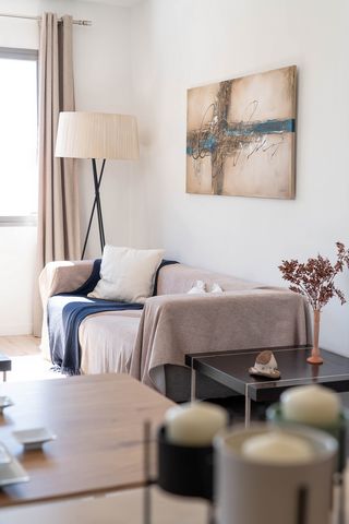 El piso ha sido completamente reformado y está situado en la primera planta de un edificio pequeño y exclusivo con tan solo ocho viviendas. Ofrece 60 m² de superficie habitable muy bien distribuida, que incluye un salón-comedor luminoso y diáfano, una cocina totalmente equipada, un amplio cuarto de baño y un generoso dormitorio con vestidor. Desde el salón y el dormitorio se disfruta de unas vistas panorámicas al mar.