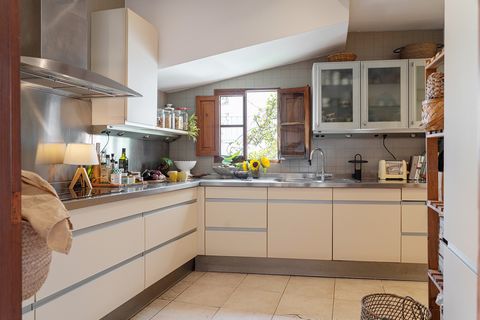 Esta casa orientada al sur está bañada por la luz natural durante todo el día y se tiñe de un brillo dorado al atardecer, cuando el sol se pone.