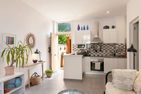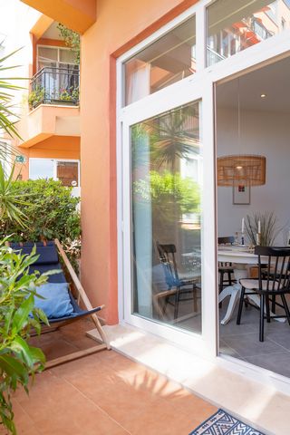El piso fue completamente reformado en 2017 y cuenta con una superficie de 51 m², además de dos terrazas privadas: una de 20 m² con sol de mañana y otra de 11 m² con sol de tarde y noche. Dispone de un dormitorio, un dormitorio auxiliar, un baño, cocina y salón con acceso directo a las terrazas, así como al frondoso jardín comunitario y a la piscina. La cocina y el salón están diseñados en un concepto de planta abierta, lo que junto con las terrazas crea una maravillosa sensación de interior-exterior. El apartamento es cómodo y funcional, con un ambiente luminoso y acogedor.