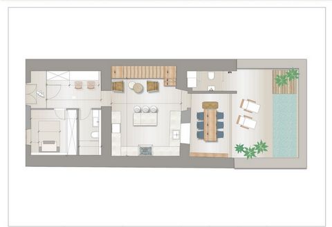La vivienda fue reformada en 2022 con un estilo boho con mucha luz y encanto, y ofrece un total de 3 dormitorios y 2 baños. La cocina totalmente equipada se abre a tu terraza privada con piscina, perfecta para los días cálidos. En la planta superior encontrarás dos de los tres dormitorios con armarios empotrados, junto con un luminoso salón con chimenea.