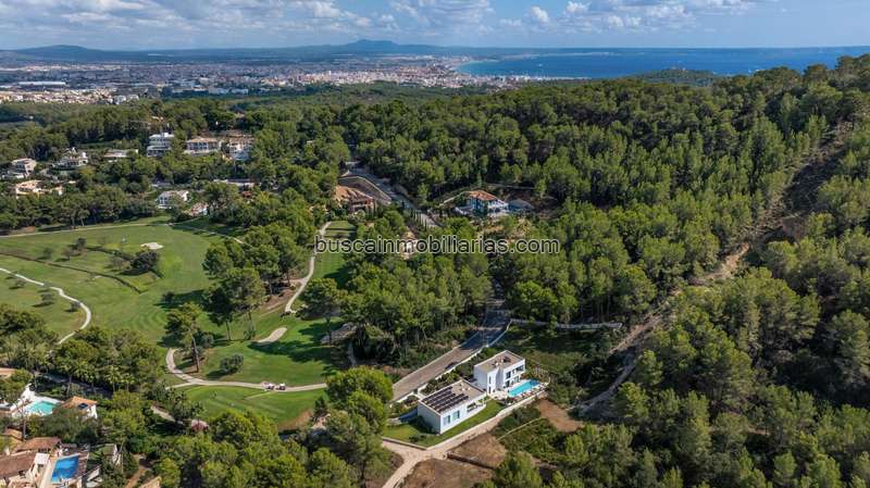 En Son Vida, la prestigiosa urbanización en las colinas de Palma de Mallorca, caracterizada por sus lujosas villas con vistas panorámicas, su exuberante vegetación, campos de golf y hoteles de cinco estrellas. Un entorno tranquilo y seguro, exclusividad y privacidad , con proximidad a los servicios y la vibrante vida cultural de Palma.Esta villa de lujo de 644 m2 de vivienda combina diseño vanguardista y comodidad en un oasis de estilo moderno, donde la arquitectura se fusiona con la naturaleza a través de amplios ventanales que enmarcan vistas impresionantes. Un interior minimalista, espacios diáfanos y una piscina de 44 m2 invitan a una experiencia de vida sofisticada, donde la tecnología y la sostenibilidad se unen a acabados y materiales de alta calidad, creando un santuario de tranquilidad y placer.2.414 m2 de solar con un jardín hermoso. Distribución: Salón – comedor con cocina abierta creando una sensación de amplitud y fluidez, 6 dormitorios con baño en suite, baño de cortesía, segunda cocina grande para el servicio, sala de máquina, trasteros, garaje para varios coches, calefacción central – suelo radiante, aire acondicionado, ascensor , demótica, paneles solares, etc. Una propiedad especial y lista para entrar .
