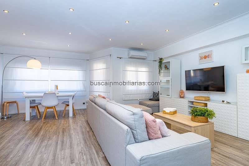 Amplio y luminoso salón comedor de 34 m2. Con salida a balcón.