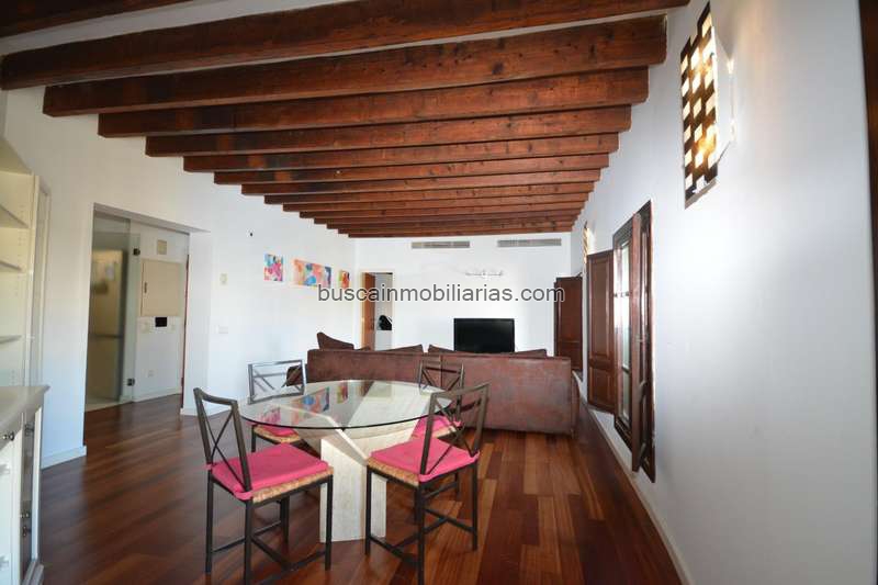 La cocina, totalmente amueblada, cuenta con electrodomésticos de última generación y una práctica coladuría. El amplio salón comedor, con suelo de parque y vigas vistas, al igual que toda la vivienda, es el lugar perfecto para relajarte y disfrutar de momentos inolvidables con tus seres queridos.