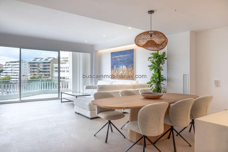 El piso ha sido reformado recientemente con materiales de alta gama y se entrega completamente amueblado con mobiliario de primeras calidades. El estilo interior es moderno y funcional, combinando diseño y confort en cada estancia. Desde el salón y las dos terrazas privadas se aprecian panorámicas directas al mar.