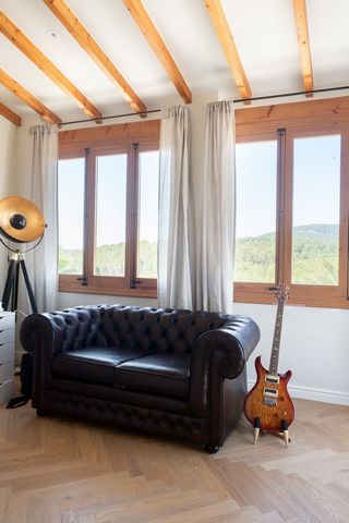 La casa se ubica en una amplia parcela de 2.500 m² y cuenta con una superficie construida total de 507 m², distribuida entre la vivienda principal, un piso de invitados y una casa de invitados independiente. En total dispone de 8 dormitorios y 6 baños. La propiedad ha sido recientemente reformada con esmero, conservando su auténtico encanto y carácter, al tiempo que se han incorporado comodidades modernas. El resultado es una vivienda en excelente estado, con un interior elegante y detalles arquitectónicos de gran belleza, como suelos de madera, baños revestidos en piedra natural, vigas de madera vistas, una escalera señorial y armarios empotrados a medida. Las zonas exteriores son amplias y acogedoras, con varias terrazas, un jardín y una piscina privada.