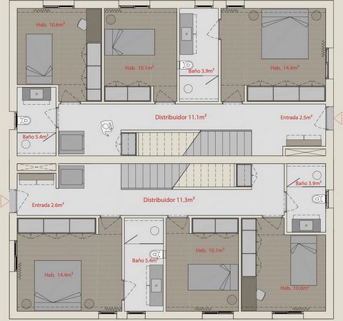 El proyecto consta de dos viviendas independientes, cuidadosamente diseñadas por un prestigioso equipo de arquitectos. Cada vivienda ofrece una amplia superficie útil de aproximadamente 155 m², combinando arquitectura moderna con la más alta calidad constructiva.