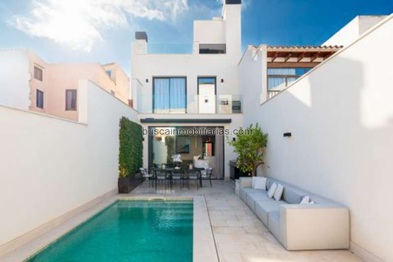 Aquí disfrutarás de una vivienda luminosa y espaciosa con una superficie de 139 m² más terrazas, distribuida en dos plantas. En la planta baja encontrarás un salón luminoso con cocina abierta totalmente equipada. El salón también cuenta con una chimenea, una vinoteca y acceso a tu terraza privada, que incluye una piscina privada, cocina exterior, ducha y espacio para muebles de comedor y lounge. En la planta superior hay tres amplios dormitorios con armarios empotrados. Cada dormitorio cuenta además con su propio baño en suite totalmente equipado.La casa cuenta con materiales de alta calidad en todas sus estancias y mucha luz natural. ¡No te pierdas la oportunidad de vivir en uno de los mejores barrios de Palma!Características adicionales: Suelo radiante, aire acondicionado con función de calor/frío, piscina y cocina exterior.