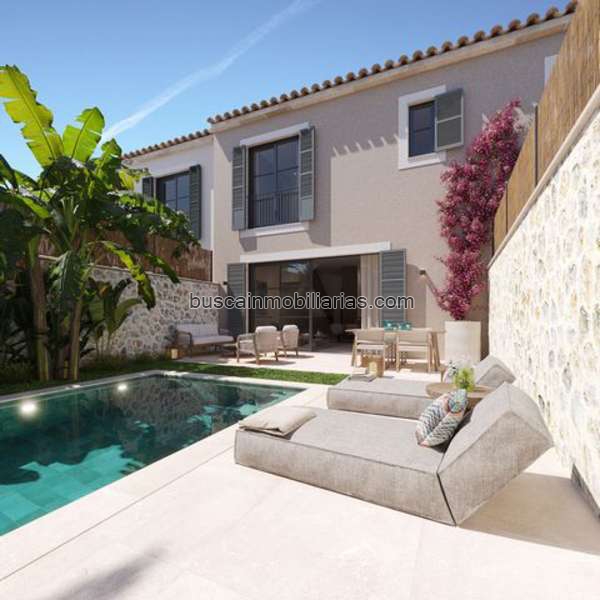 Casas adosadas de obra nueva en Son Espanyolet Casa adosada con jardín privado y piscina Este nuevo proyecto se encuentra en el barrio de Son Espanyolet, junto a Santa Catalina en Palma. Aquí se está a tan solo unos minutos a pie del centro de Palma.El proyecto consta de cuatro modernos adosados, con superficies que van de 174 a 190 m², diseñados para ofrecer un hogar luminoso y espacioso. La arquitectura combina líneas contemporáneas con una atmósfera cálida, centrada en la comodidad, la funcionalidad y la privacidad. Cada vivienda dispone de un jardín privado y acceso a una piscina.En la planta baja se encuentra una cocina abierta, conectada con el salón y el comedor. Desde esta zona se accede a una amplia terraza y al jardín privado con piscina. La primera planta está destinada a los dormitorios: la espaciosa suite principal cuenta con baño en suite y vestidor, mientras que los otros dos dormitorios comparten un baño moderno y elegante.El sótano ofrece una distribución flexible, con una sala polivalente, coladuría y sala de máquinas. Desde aquí también se accede directamente al garaje subterráneo comunitario, donde cada vivienda dispone de una o dos plazas de aparcamiento privadas.La finalización del proyecto está prevista para finales de 2026, lo que representa una oportunidad única para adquirir una vivienda de obra nueva en una de las zonas más atractivas y demandadas de Palma.