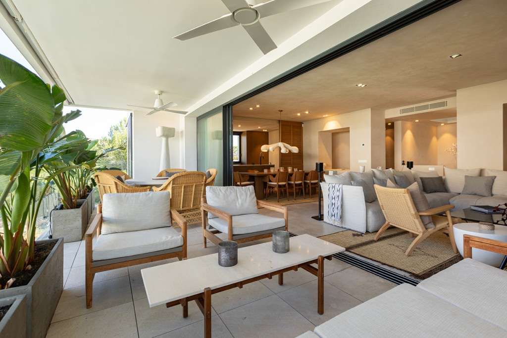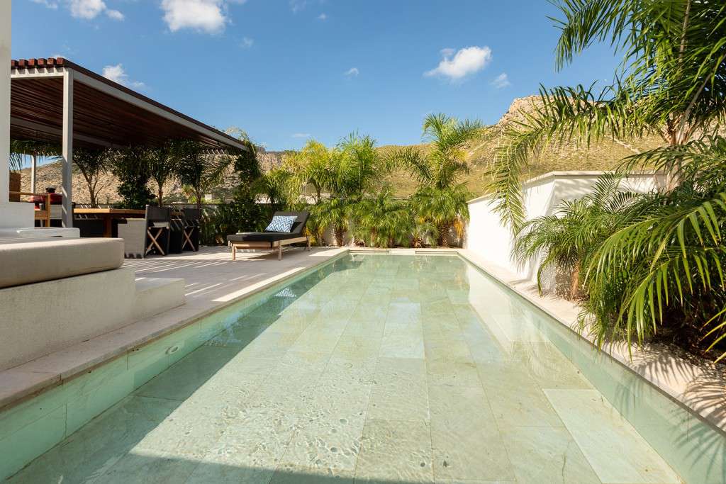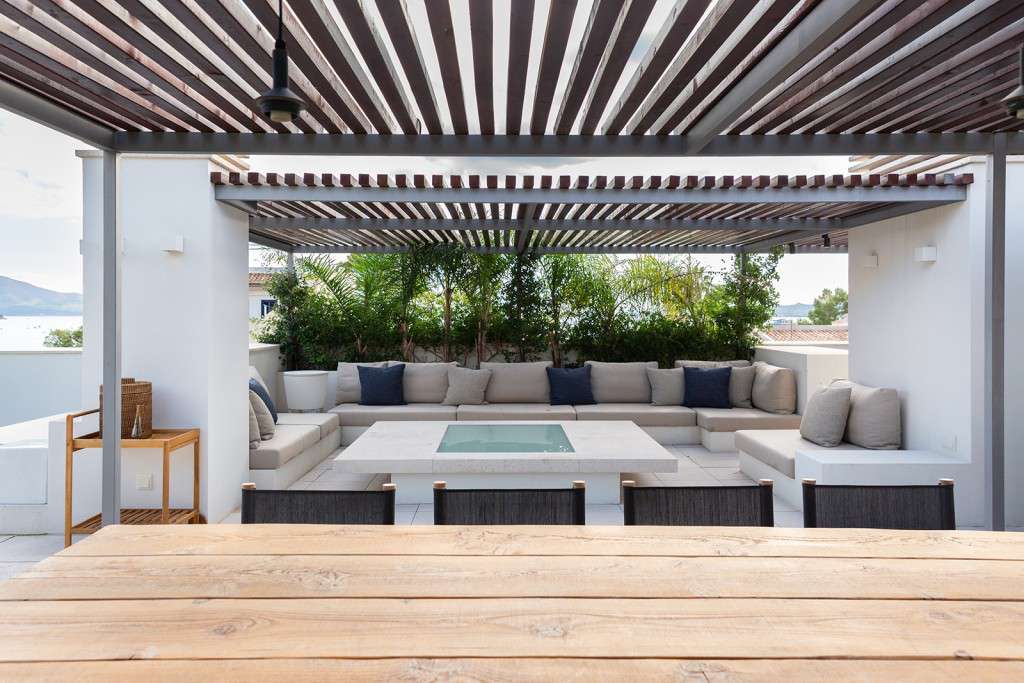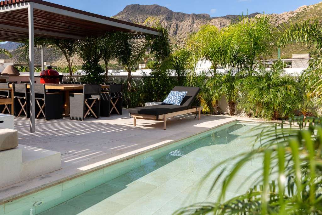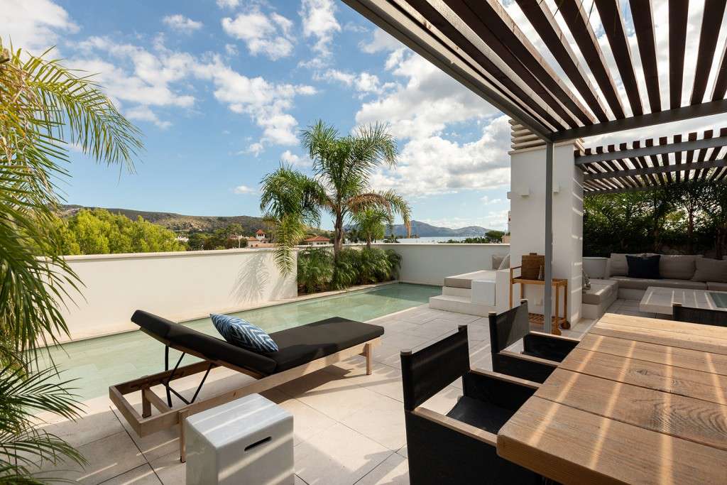 A la espectacular terraza privada de la azotea se accede por una escalera interior desde el salón principal. Este es su oasis personal, que ofrece increíbles vistas de las montañas circundantes y la pintoresca bahía de Port de Pollença. Este servicio de coronación cuenta con una piscina privada y un amplio espacio de vida al aire libre amueblado con asientos empotrados a medida. En este nivel también hay un práctico aseo independiente.