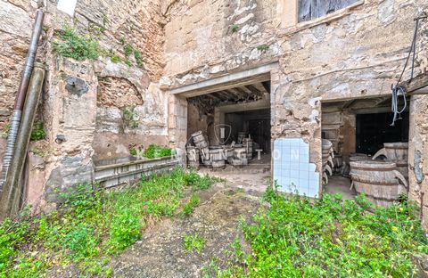 Dieses interessante Anwesen aus dem Jahr 1870 mit Zugang von 2 Straßen, die endlose Möglichkeiten bieten, befindet sich im Herzen des wunderschönen Dorfes Porreres, Mallorca.