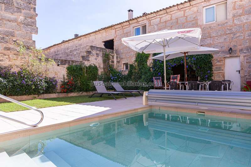 También en el parque y a continuación de la piscina contamos en la PB con Espacio cubierto dónde nos encontramos con Barbacoa con parrilla y horno de leña y fregadero de piedra original.