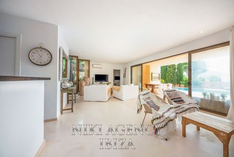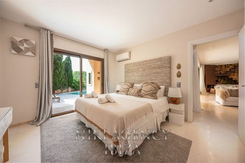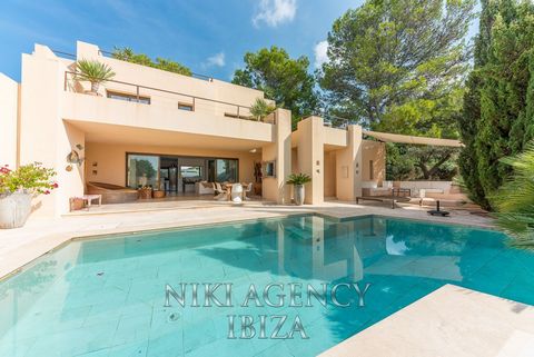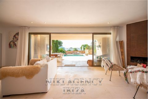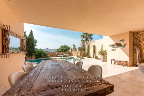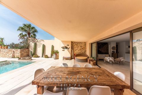 Esta elegante villa, situada en la codiciada urbanización Caló d’en Real, combina diseño moderno, encanto mediterráneo y una ubicación privilegiada con impresionantes vistas al mar.
