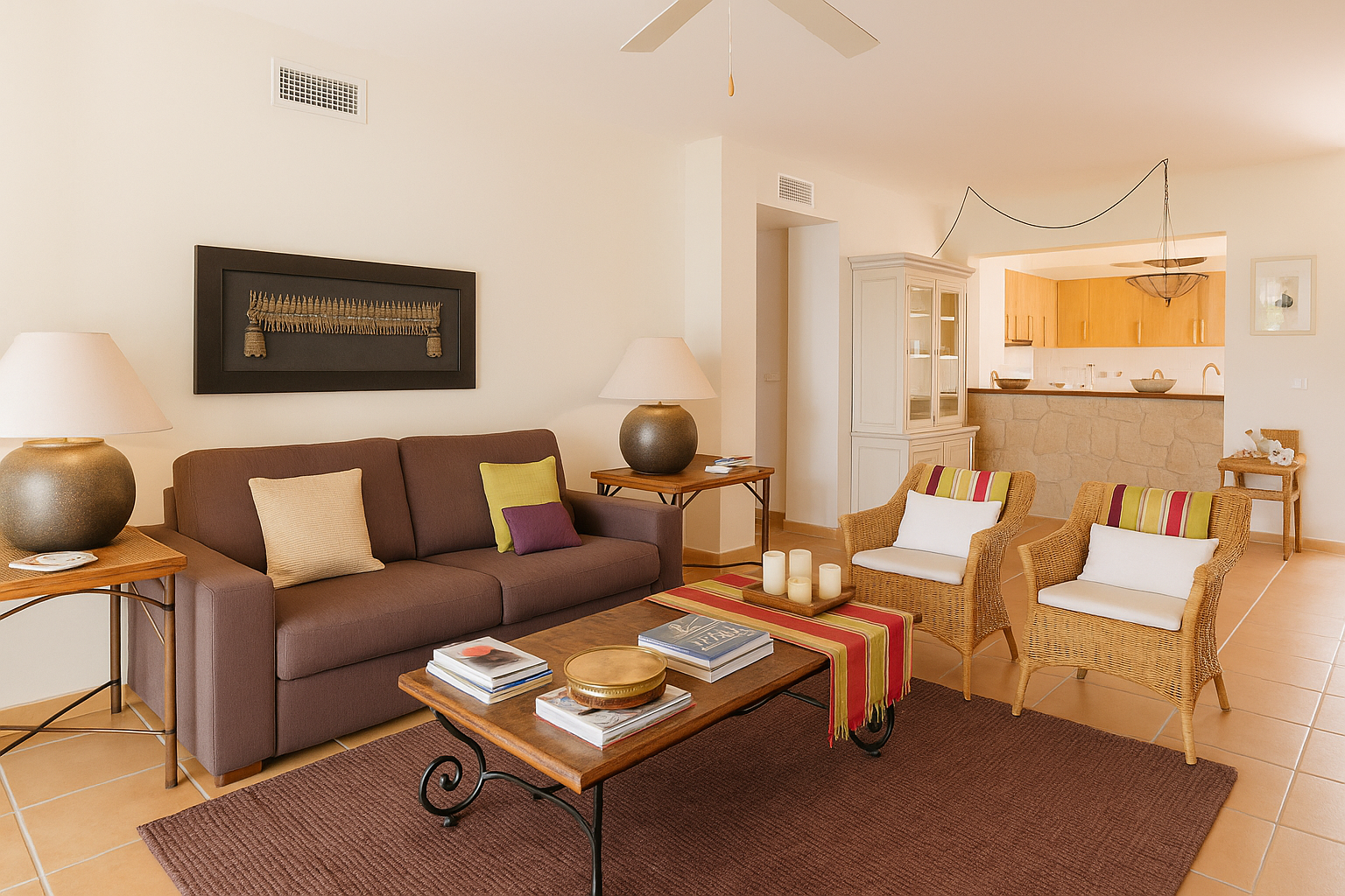 Esta bonita propiedad se encuentra en un exclusivo complejo residencial con piscina y pista de tenis, situado entre las bonitas playas de Cala Tarida y Cala Molí.