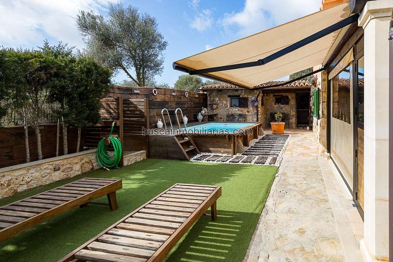 CALA LLOMBARDS: Casa tipo rústica forrada de piedra con mucho encanto, parcela 300 m2, dispone de tres habitaciones, dos baños, cocina amueblada, zona de coladuría, dos amplios trasteros. Jardín, pequeña piscina, terraza y porche, terraza superior, barbacoa, porche con estufa y pozo propio. A tan solo 15 minutos de Cala Llombards, y 15 minutos de Es Caló des Moro.