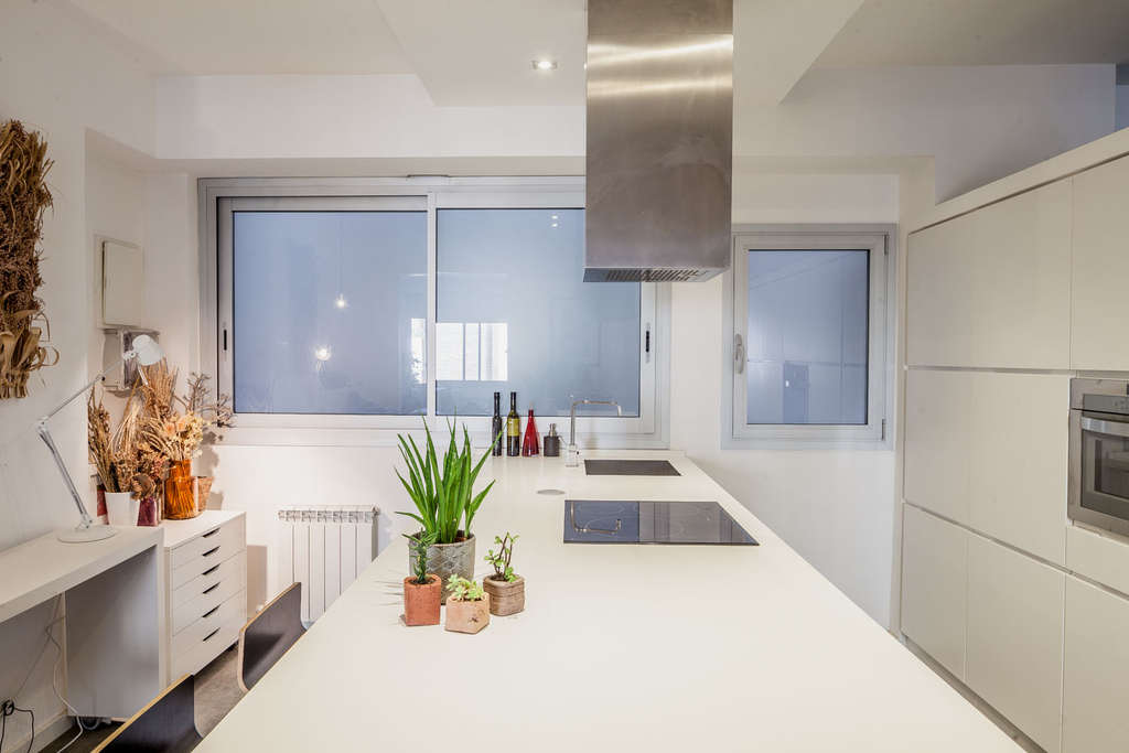 Para la reforma se emplearon materiales y acabados de máxima calidad, tales como suelos de parquet natural proporcionando mucha calidez a toda la vivienda, materiales de alta gama en baños, cocina de diseño fabricada a medida, carpinterías exteriores de aluminio e interiores de madera y sistema de climatización por conductos de entre otros.