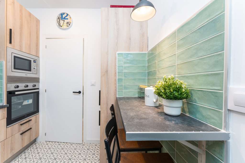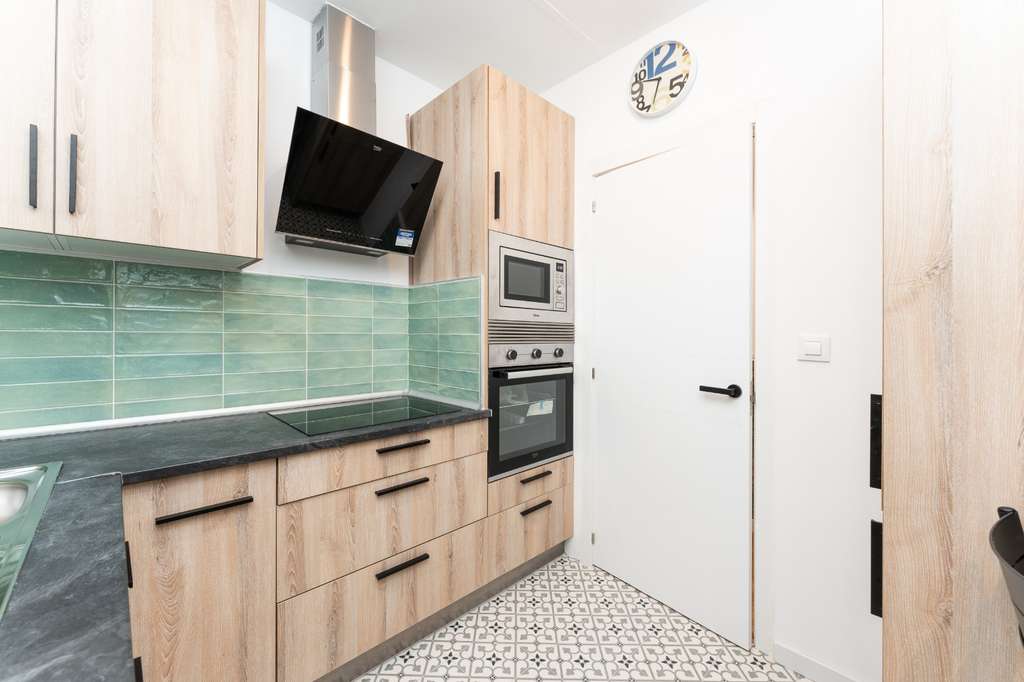 Equipamiento completo de cocina con electrodomésticos de alta calidad.