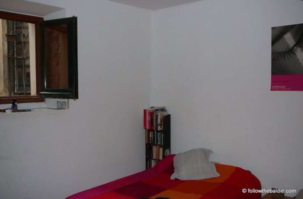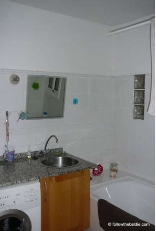 Vista del patio y capilla privada del convento con al fondo la torre de la basílica, coronada por el bronce enorme de la Virgen de la Merced. Los monjes (a veces) y los pájaros (siempre) cantan flojito por la mañana - es como estar en el campo - y las campanas paran de noche. Alféizar trencadís de Anna Julià. Armarios empotrados. Cuarto de baño con lavadora, ventanita al patio.