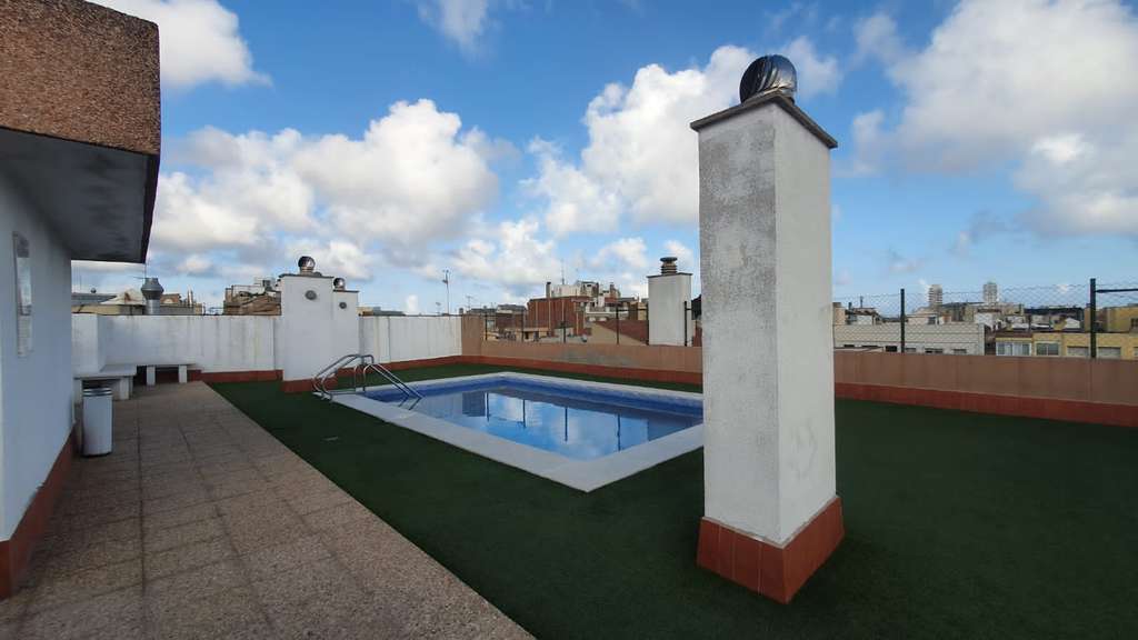El edificio dispone de una zona comunitaria con piscina exterior, duchas y una gran sala polivalente para reuniones y celebraciones.