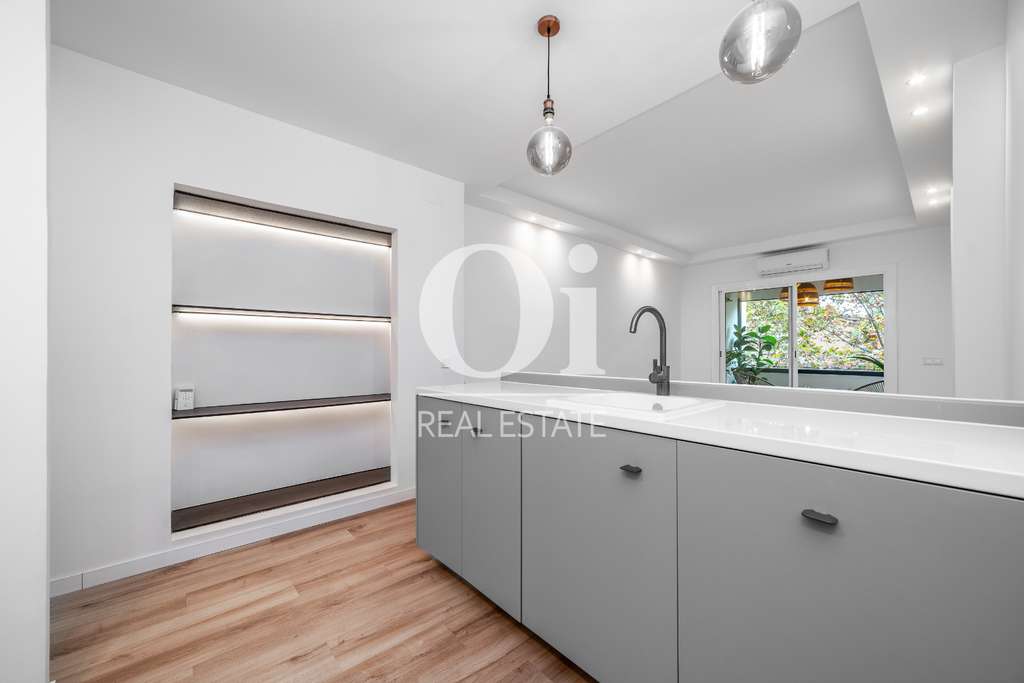 Sobre laRamblaPoblenou y a diez minutos de la playa, nos espera este soleado piso de 92m², ubicado en una 4ta planta en finca bien conservada con ascensor. La vivienda en su zona social cuenta un amplio salón con ventanal de gran tamaño que permite la entrada de mucha luz natural durante el día, acceso al balcón-terraza ambientado con plantas e iluminación cálida. Pasamos a la cocina abierta a salón a través de una isla, equipada con placa de inducción, horno, lavavajillas, campana extractora, así como estanterías con iluminación led. La zona de noche cuenta con tres (3) dormitorios, el principal con gran ventana al exterior y puerta al balcón, dispone de un baño en suite completo, con revestimiento porcelánico y ducha empotrada. El baño de cortesía también dispone de ducha y espejo retro-iluminado, así como lavabo en tono blanco mate. El lavadero, con ambientación cálida, permite espacio para lavadora y tender. Todo el piso está iluminado con luces led perimetrales, suelo laminado de alta calidad; dispone de aire acondicionado y calefacción por radiadores así como armario de guardado en el pasillo, todas las estancias disponen de ventanas de aluminio climalit