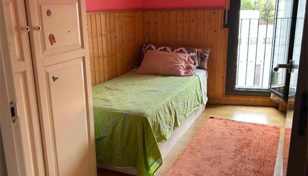 La vivienda se compone de cuatro habitaciones (una utilizada como trastero), un baño completo y un segundo baño reconvertido en trastero. El salón-comedor recibe abundante luz natural y conecta con una cocina reformada, equipada con armarios nuevos que aportan un estilo moderno y cálido.