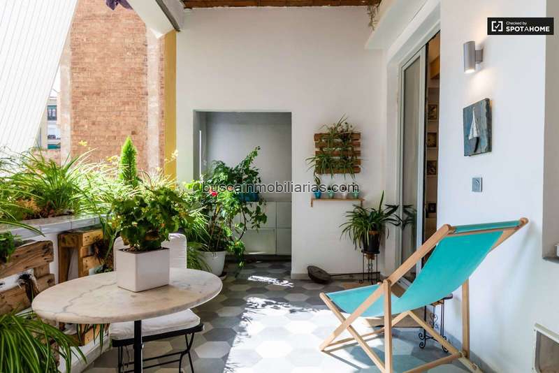 Este es un increíble segundo piso, estudio en la calle de la Diputación, Barcelona. Cuenta con una amplia sala de estar y una terraza bañada por el sol cerca de uno de los mejores mercados de la ciudad.
