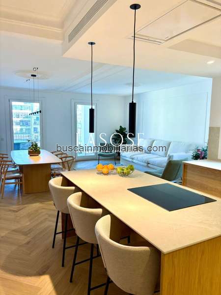 El corazón de la vivienda es el impresionante espacio de salón, comedor y cocina, un ambiente luminoso y acogedor realzado por numerosas ventanas que llenan el interior de luz natural. Esta zona se conecta directamente con la lujosa terraza privada de 18 m2, que ofrece suficiente espacio tanto para un cómodo salón exterior como para colocar una mesa de comedor, creando el entorno perfecto para disfrutar del excepcional clima de Barcelona y de un estilo de vida fluido entre interior y exterior.