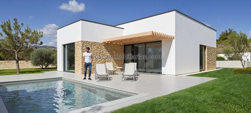 Casa con etiqueta de eficiencia energética A, con aerotermia y con grandes prestaciones de aislamientos. Esta casa de 3 habitaciones, 2 baños y sala de estar, comedor y cocina de 44 m2 se desarrolla en una sola planta, rodeada del propio jardín con posibilidad de construir piscina.