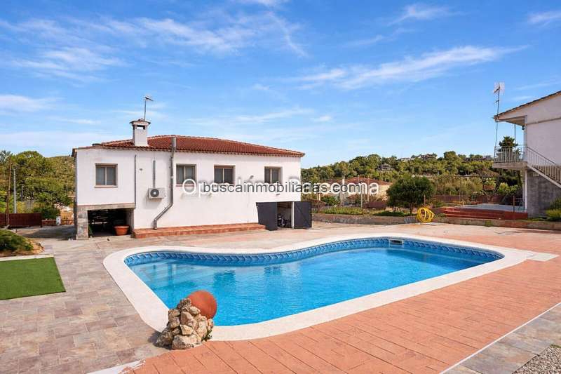 En el exterior destaca su piscina privada, zona chill out, terraza y espacio para aparcar varios vehículos en un terreno muy cómodo y totalmente plano.