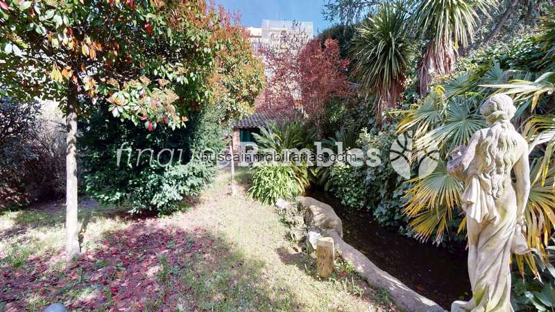 La finca destaca per un espectacular jardí privat, en un solar de 596 m2 d´extensió, un autèntic luxe al centre de la ciutat. L’espai exterior, ampli i íntim, compta amb un gran cobert, una bassa d’aigua amb figures de pedra que reforcen el caràcter noble de la propietat, i un pou propi. Un veritable oasi on relaxar-se, passejar, organitzar trobades familiars o simplement gaudir de la tranquil·litat.
