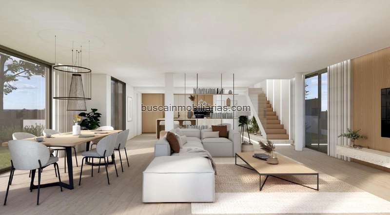 La zona de día, con salón-comedor y cocina abierta con despensa, se concibe como el corazón del hogar: un espacio amplio, luminoso y conectado con el exterior. Desde aquí se accede a la terraza y al jardín con piscina, creando un entorno ideal para reuniones, momentos en familia o simplemente para desconectar.