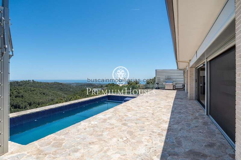 Villa casi a estrenar con espectaculares vistas al mar y a la montaña. En el exterior encontramos varias terrazas, jardín, piscina salina y zona de barbacoa. El garaje dispone de una capacidad para siete coches.
