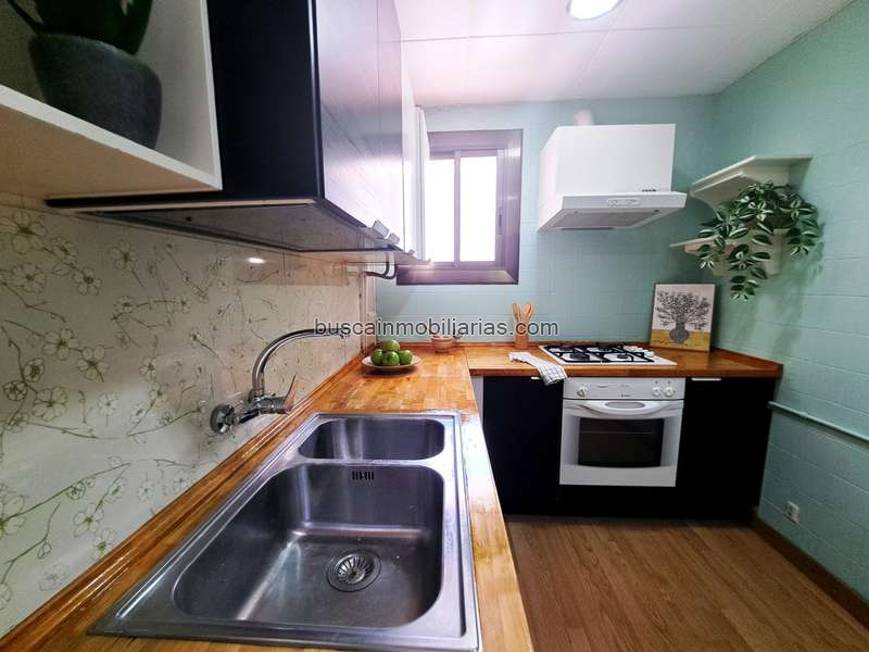 Una vez accedemos desde la planta baja a la cocina, tenemos paso a una entreplanta que da al espacio de salón-comedor que conserva la altura original y donde tenemos salida a una terraza de 13m2 con vistas a la montaña.
