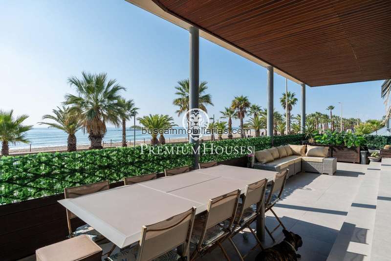 En la zona de día encontramos un amplio salón comedor con salida a la terraza de 42m2 con vistas al mar. La cocina es independiente, dispone de una zona de lavadero y una ventana pasaplatos conectada al salón. En la zona de la entrada encontramos un práctico armario empotrado.